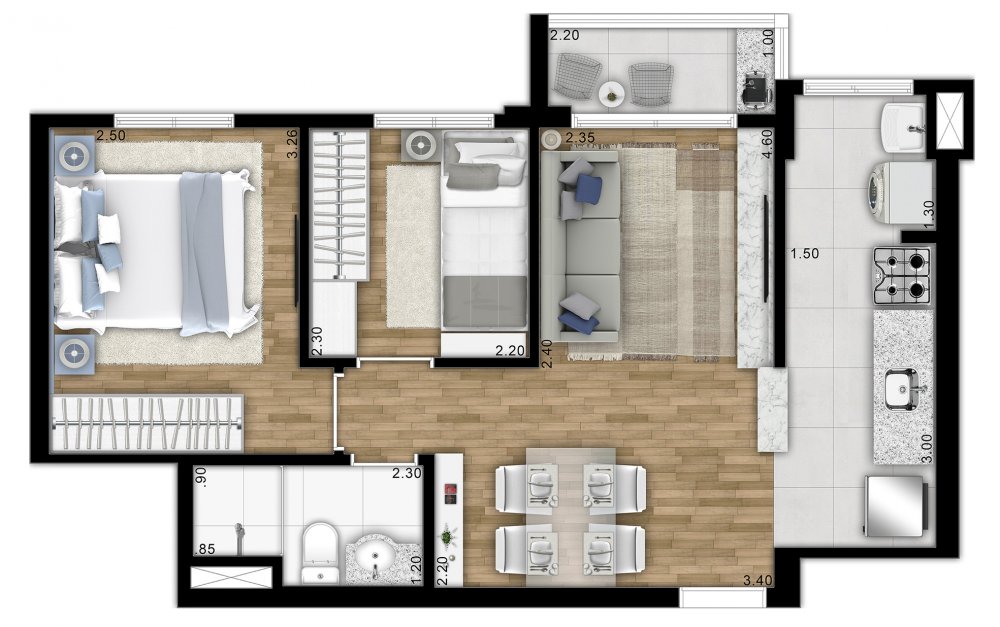 45 e 48m² com varanda grill