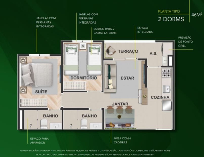 Mais DetalhesDormitórios2 Banheiros1 Garagens1 - Cód. Referência: HYPE-MAIA