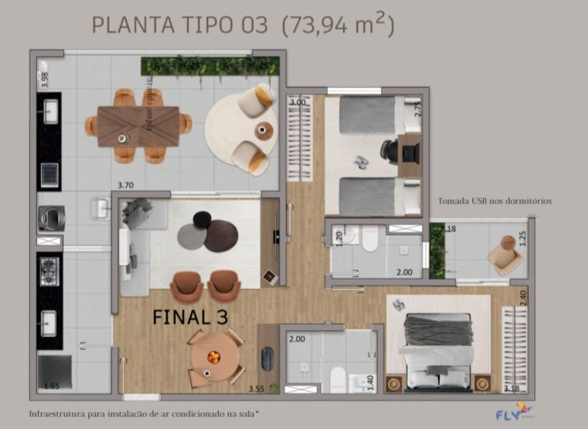 Mais DetalhesDormitórios2 Suítes1 Banheiros1 Garagens2