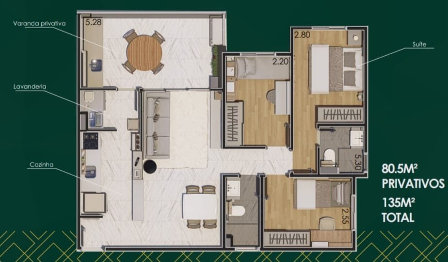 - Área Privativa: 80 m²
