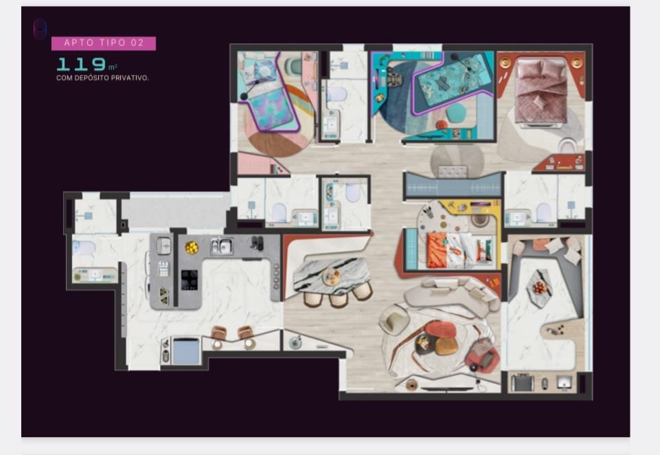 - Área Privativa: 119 m²