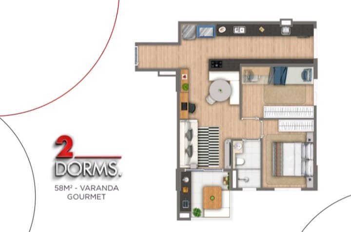 2 dormitórios com varanda gourmet